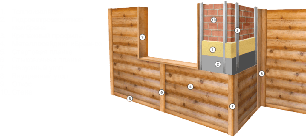 В последнее время популярен металлосайдинг под бревно, который придает дому сходство с деревянным срубом.