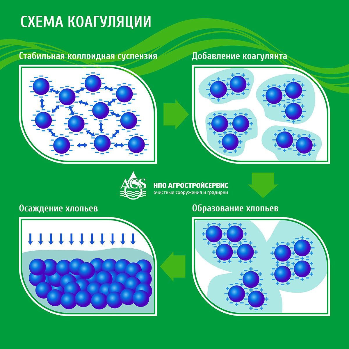 Жидкость в таких установках перемещается медленно, это позволяет частицам беспрепятственно оседать на дно. Для улучшения процесса добавляют специальные реагенты – коагулянты и флокулянты. Это позволяет укрупнять мелкие примеси, которые опускаются на дно интенсивнее.
