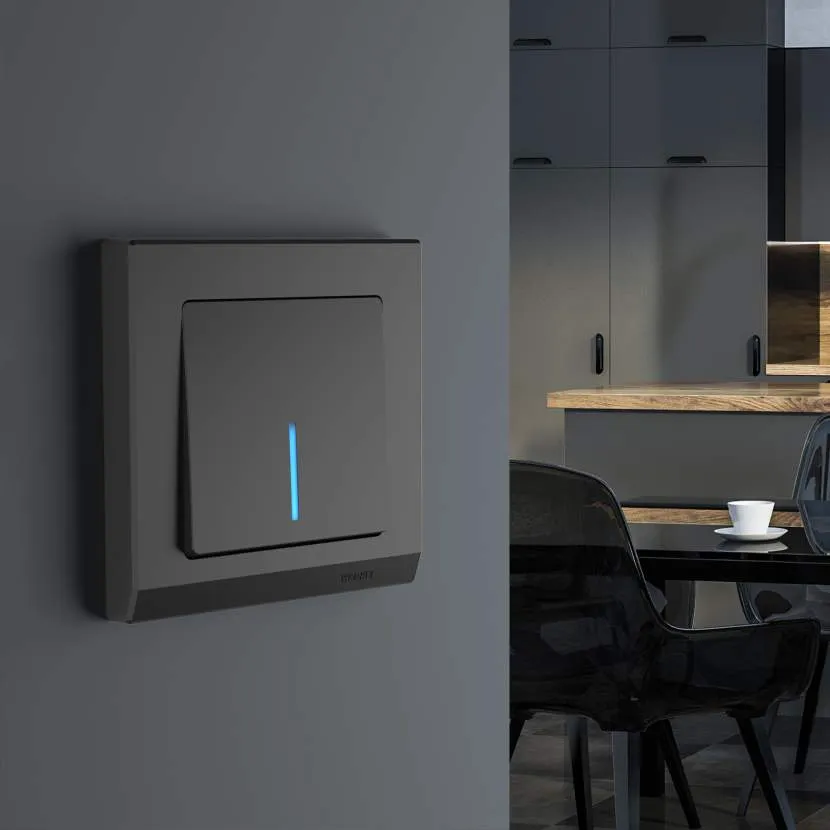 Этот тип имеет кнопку, которую нужно нажать для включения, выключения. Они часто используются для управления освещением, вентиляцией. Кнопочные выключатели могут иметь одну, несколько кнопок, могут работать с лампами различной мощности.