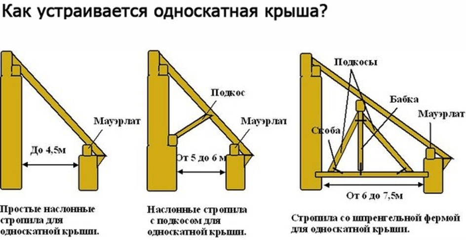 Прежде чем отдать предпочтение тому или иному виду односкатной конструкции, необходимо изучить преимущества каждого из видов.