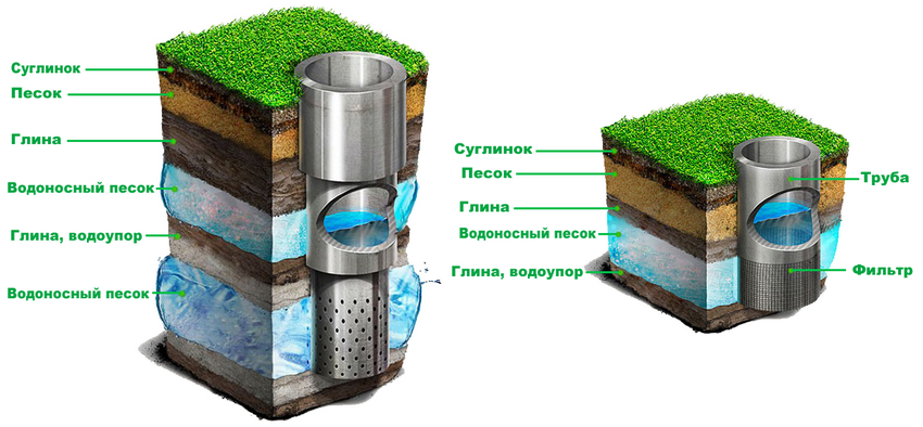 - от 70 м — артезианская скважина, артезианская вода, лицензия обязательна.