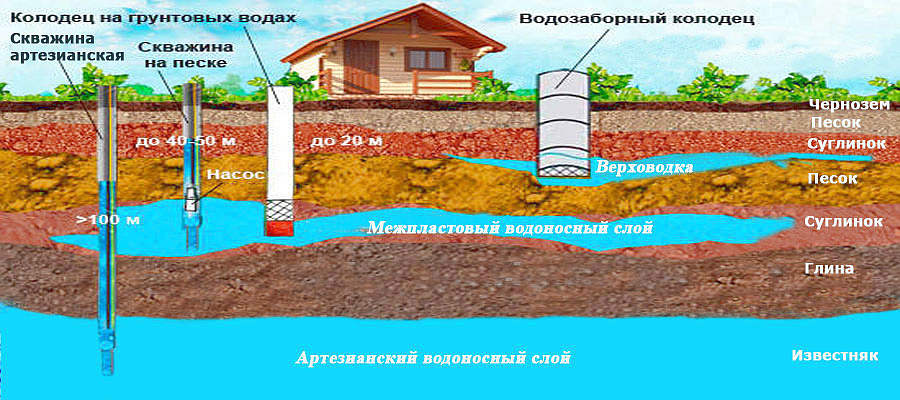 - от 70 м — артезианская скважина, артезианская вода, лицензия обязательна.