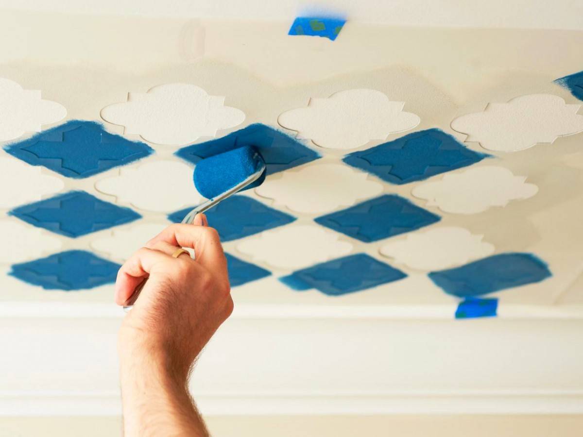 При покраске можно сделать максимально чистый потолок, без лишних отделок. Такой потолок предпочитают люди старшего возраста, кому не нужны яркие цвета. Его можно украсить необычной люстрой. Окрашивая потолок разными цветами, можно сочетать несколько оттенков. По желанию хозяина можно нанести декоративный рисунок, сделанный самостоятельно.