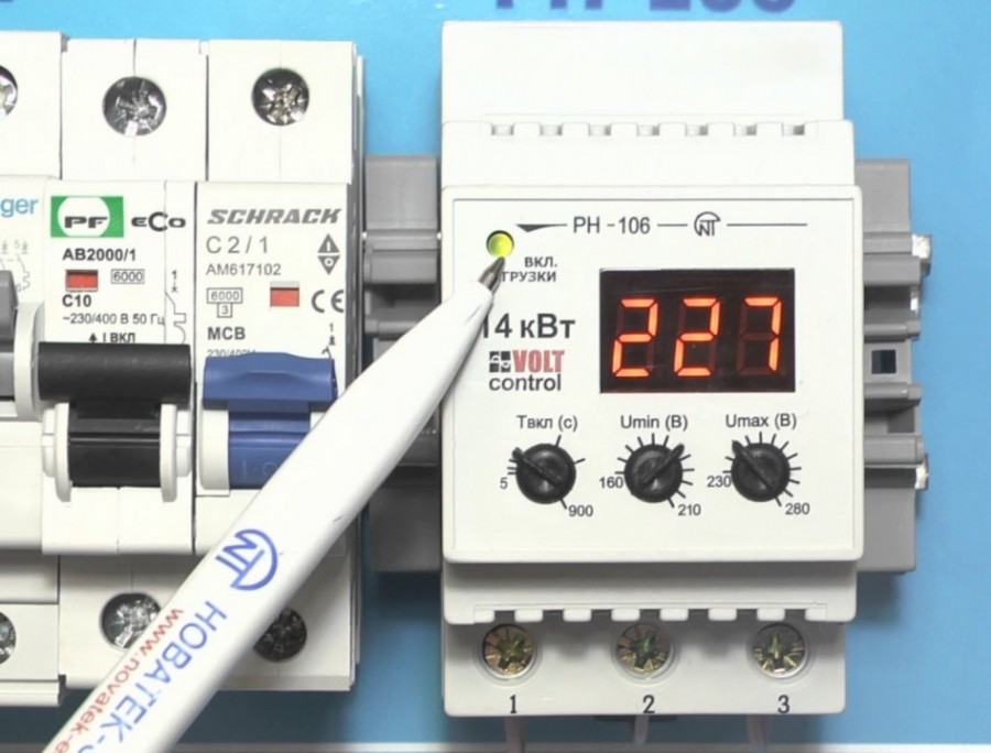 Настройка порога срабатывания, времени отключения, а также времени возврата к рабочему состоянию осуществляется при помощи потенциометров. На выводах устройства скомпонованы два комплекта контактов – для подачи питания и управления включением и отключением прибора. Некоторые экземпляры оснащены функцией подсоединения исключительно нагрузок, относящихся к приоритетным. При этом неприоритетные потребители не подсоединяются.