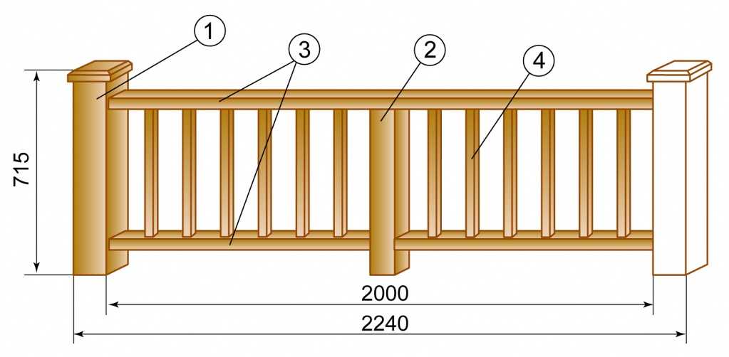 Прежде чем приступить к изготовлению ограждений своими руками, необходимо ознакомиться с их конструкцией. Итак, вне зависимости от дизайна, они состоят из следующих элементов: