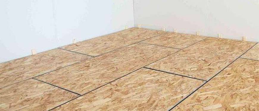 - или . В этом случае лучше применять тонкие плиты, что позволит сделать переход между ними плавным и практически незаметным. Дополнительно он обрабатывается герметизирующим средством. Учтите, что если на полу укладывается один лист OSB, то компенсационный зазор обустраивается со стороны стен.