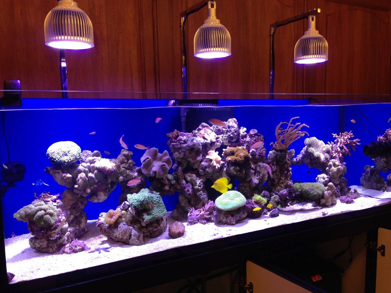 Это самый экономный вариант: потребляемая мощность невелика, а срок службы долгий. Кроме того качественные светодиодные источники света мало нагреваются, не мерцают, светят равномерно (не нужны отражатели). Свет способен проникать на большую глубину. Они подходят и для морской, и для пресной воды. При использовании светодиодных лент можно создать разнообразные декоративные световые режимы. (Однако, для рыб это большой стресс).