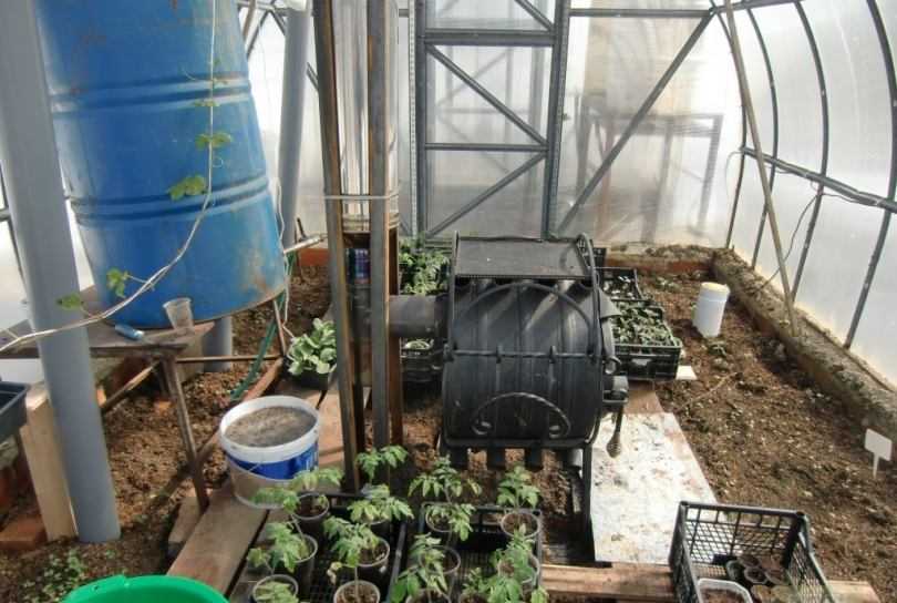 Обогревать парники можно при помощи электрокотлов или компактных дровяных печей. Поддерживать нужную температуру поможет биотопливо из перегноя и соломы, разложенное по грядам, а также листы рубероида, размещенные по периметру теплицы для зимнего выращивания огурцов.