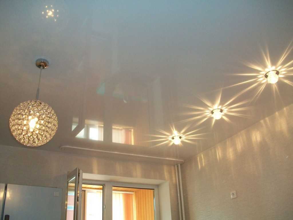 Расположение светильников на натяжном потолке на кухне: главные особенности
