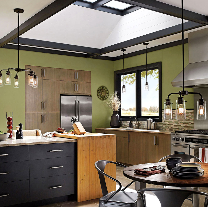 Идеи оформления освещения на кухне над столом