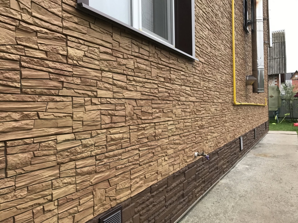 Один из возможных способов отделки – облицовка цоколя дома пластиковыми панелями.