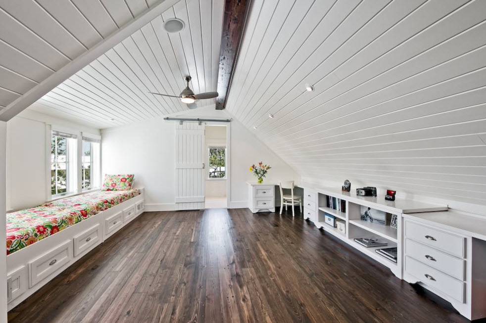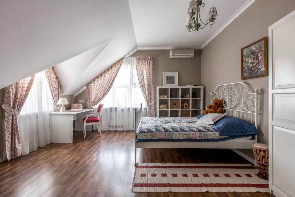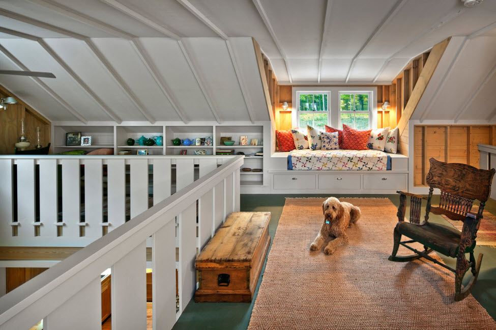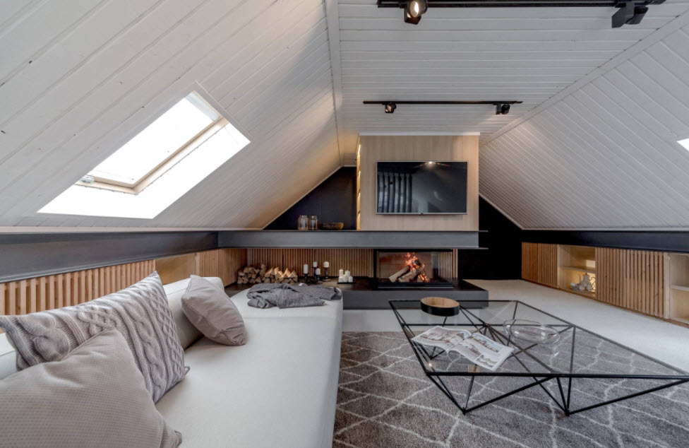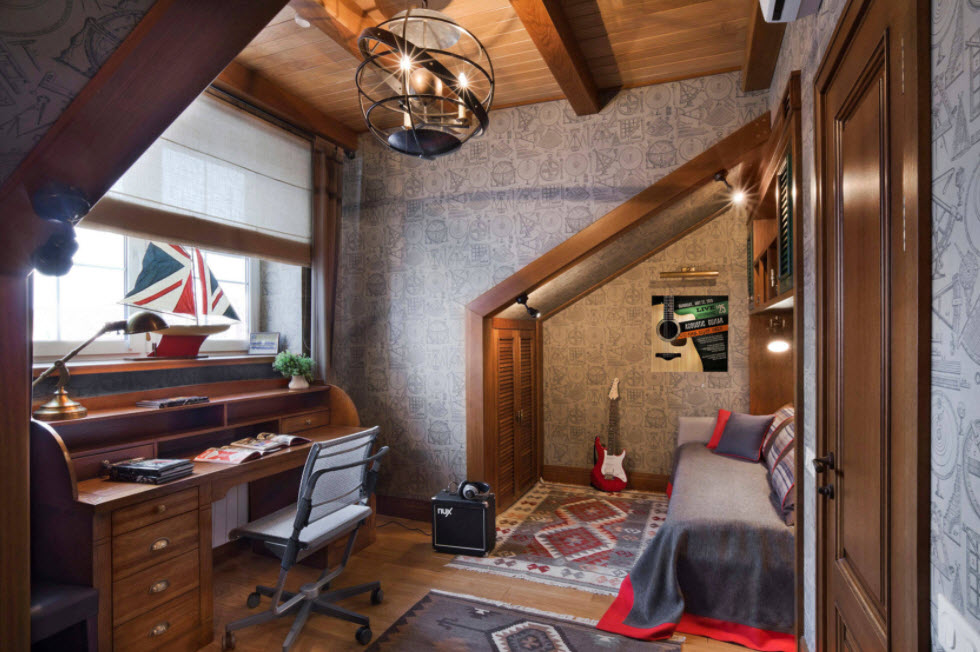 Мансарда уже давно не воспринимается как чердак для хранения ненужных вещей. В загородных домах помещение под крышу оборудуют под библиотеки, тренажёрные залы, кабинеты и детские.