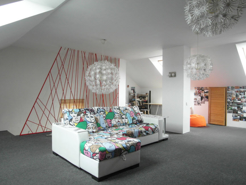 Помимо этого, при обустройстве мансарды ее можно сделать более оригинальной с помощью разделения на несколько комнат или создания перегородки. Это не только позволит сделать эксклюзивный дизайн, но и поможет использовать площадь более рационально.