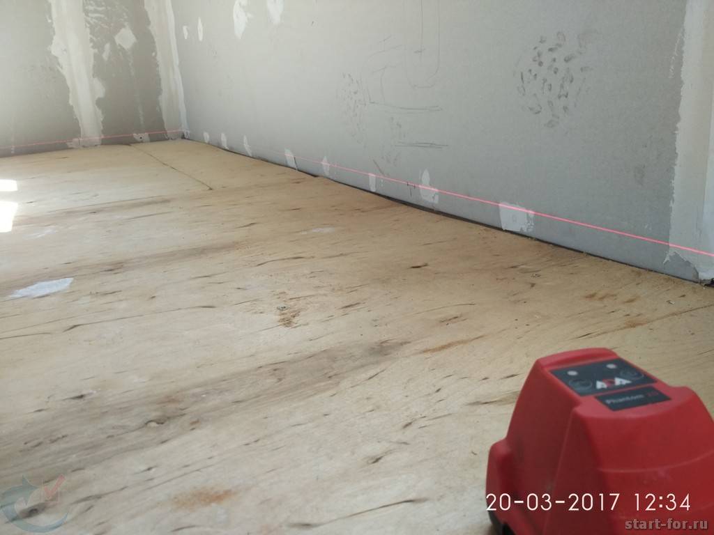 Перед началом сборки системы я отбил с помощью лазерного нивелира «горизонт» по всему периметру стен, от которого ставил контрольные отметки для соблюдения условий уклона трубы.