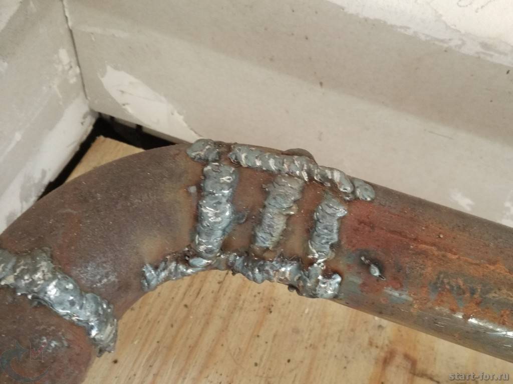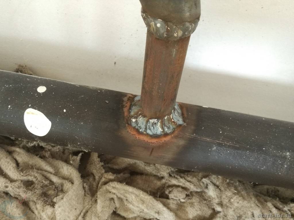 Монтировать систему отопления я начал со сборки труб. Варил систему сам, полуавтоматом, немного потренировавшись начал добиваться довольно неплохого шва.