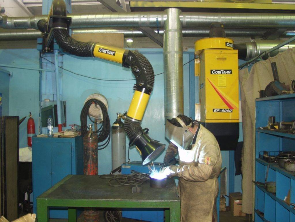 Вентиляция сварочных цехов направлена на удаление воздухопотока с содержанием окиси азота, углерода, озона, фтористых соединений. Для этого предусматриваются локальные вытяжки.