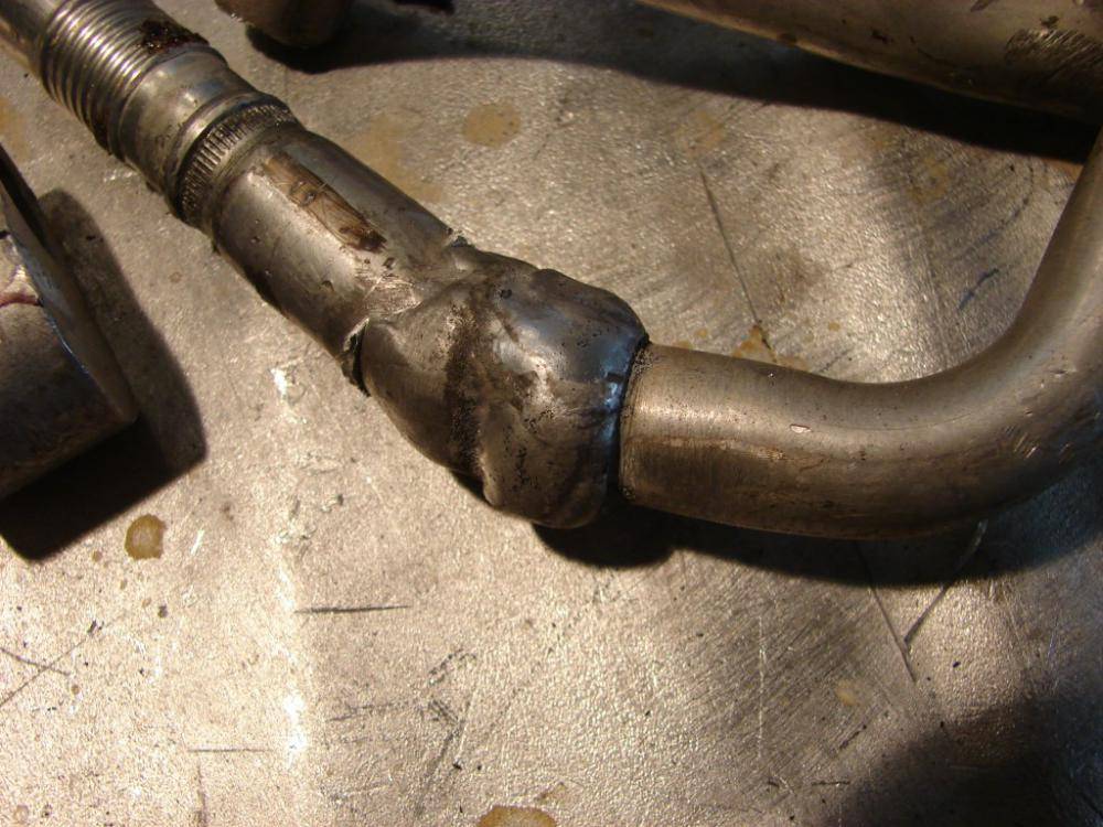 Гораздо проще снять повреждённую трубку и воспользоваться услугами профессионального сварщика. Если повреждение одиночное, а в целом трубка сохранилась хорошо, то отремонтированная таким способом деталь будет служить не хуже новой.