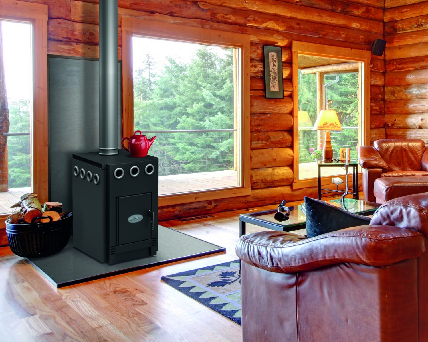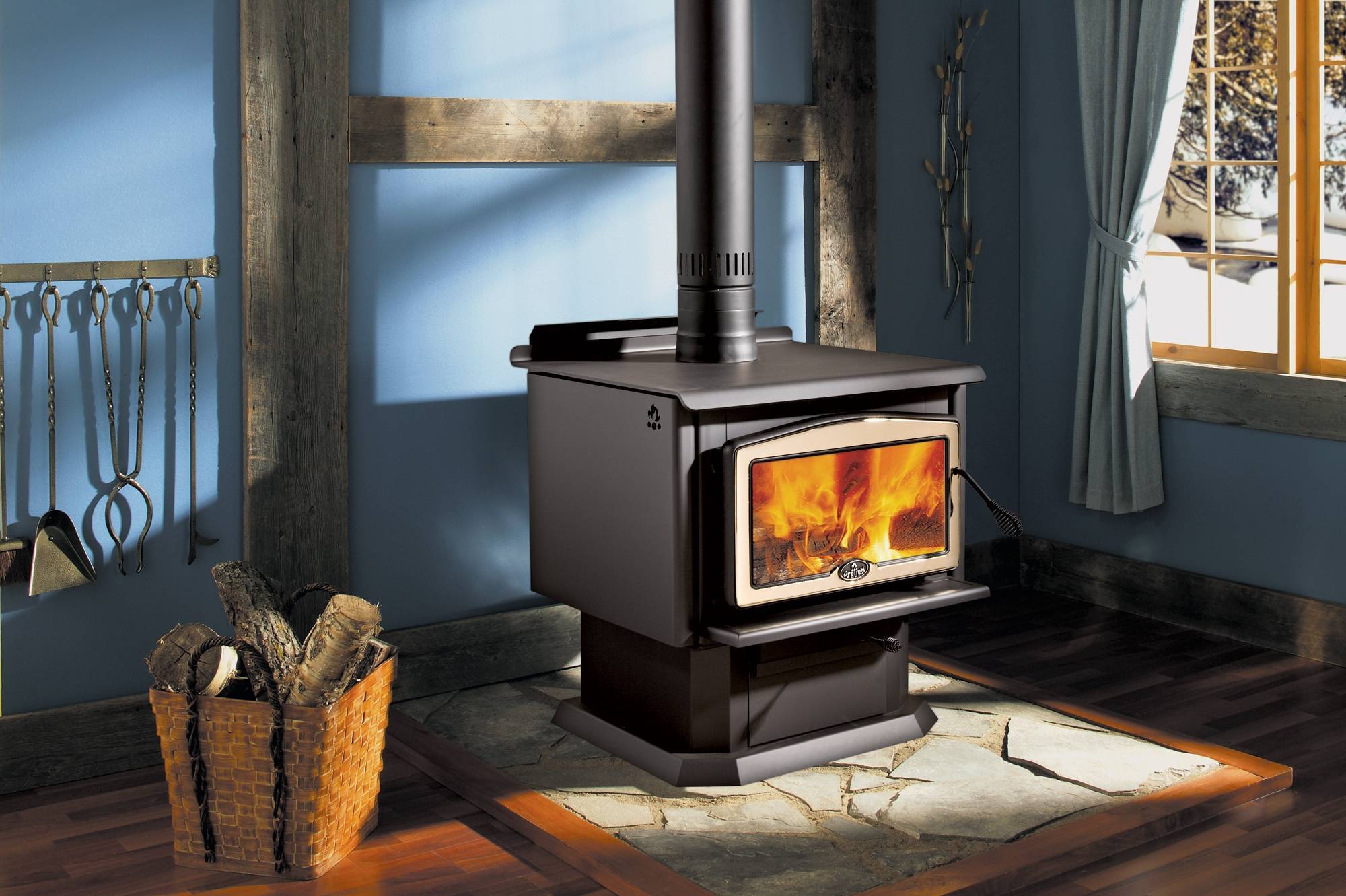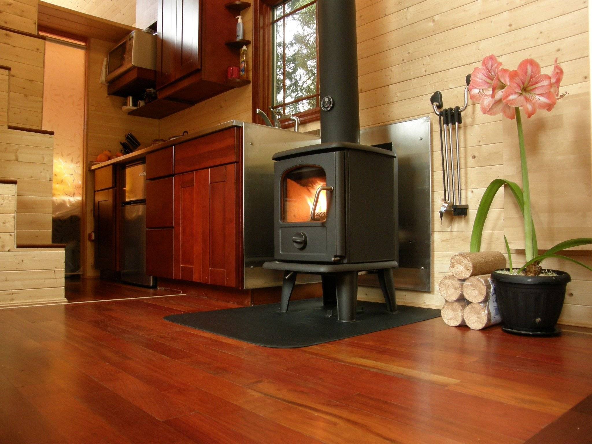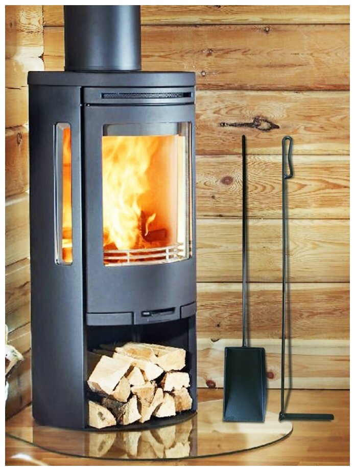 Фото 4. Чугунная дровяная печка. Оснащена термостеклом, которое позволит наслаждаться пламенем.