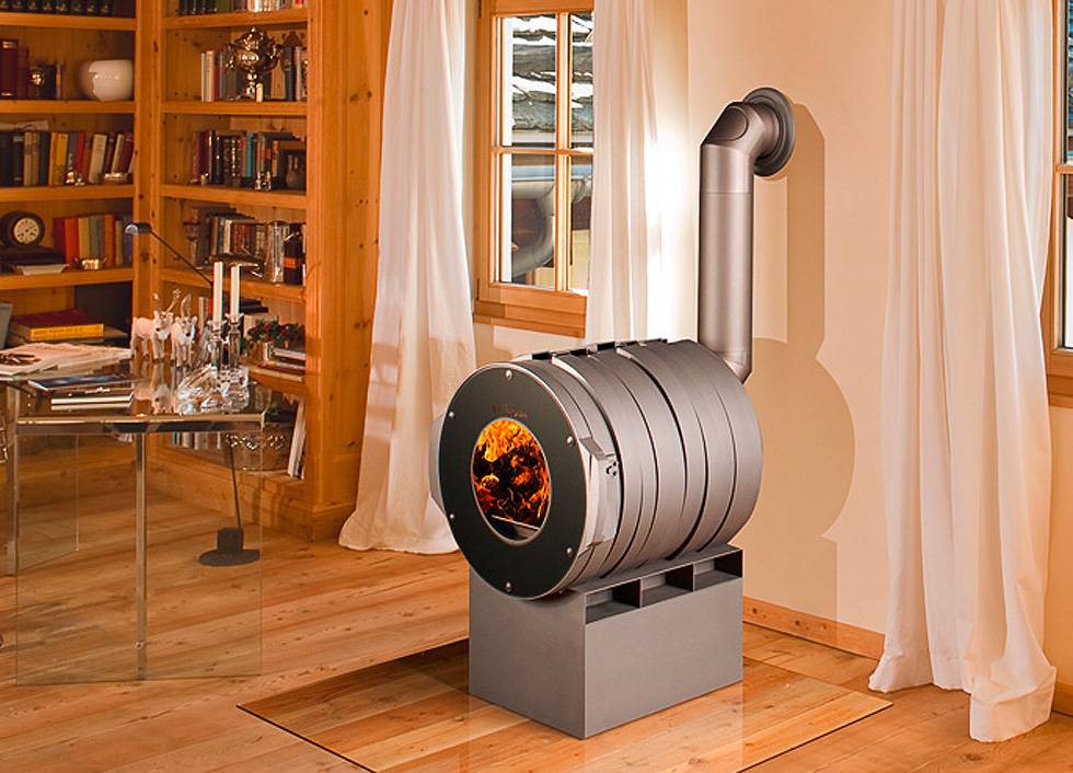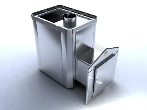 Фото 5. Дровяная печка из нержавеющей стали. Такое устройство быстрее всего нагревается и остывает.