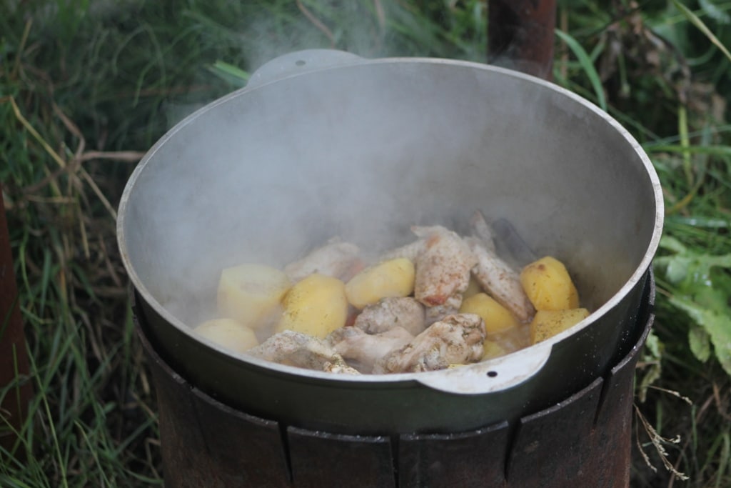 Человечество использует казан не одно столетие, это приспособление возникло еще задолго до появления электрических и газовых плит. Для приготовления пищи в данной посудине необходим живой огонь и максимально простой и функциональный очаг. Казан имеет шаровидное днище и толстые стенки. Поэтому устойчивости на ровной поверхности ждать не приходится. Круглая форма предполагает подставку в виде кольца. Не стоит пытаться разместить его на обычной решетке для гриля или на мангал для шашлыков.
