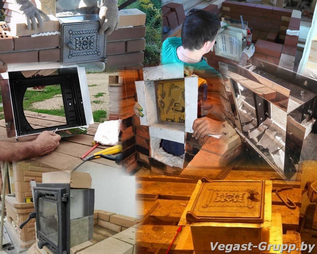 Зазор между дверцами и кирпичной кладкой должен быть небольшим; полностью исключать его нельзя, потому что материал при повышении температуры будет расширяться. Щели между кирпичом и дверцами при установке заделывают герметиками из базальта, минеральной ваты. В крайнем случае используют асбест, но, учитывая вредное влияние волокон на дыхательные пути человека, лучше этот материал не применять для жилых помещений.