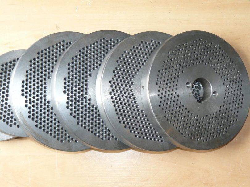 Ее можно приобрести в готовом виде или изготовить самостоятельно, используя для этих целей лист металла. Толщина такого листа должна составлять не менее 20 мм. Отверстия в матрице, в которых будут формироваться топливные гранулы, должны иметь коническую форму. Приобретая или изготавливая самостоятельно матрицу для станка по производству топливных пеллет, следует иметь в виду: чем больше будет диаметр такого конструктивного элемента, тем выше будет производительность оборудования.