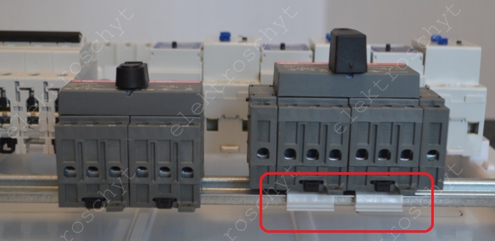 Для поднятия рубильника АВВ я использую специальные адаптеры от Шнейдер Электрик, которые помогают приподнять рубильник на дин-рейке в щите. Но иногда реверсивный рубильник может упирать в крышку электрического щита и не давать ей закрываться, поэтому тоже надо знать, где их можно использовать, а где нельзя.