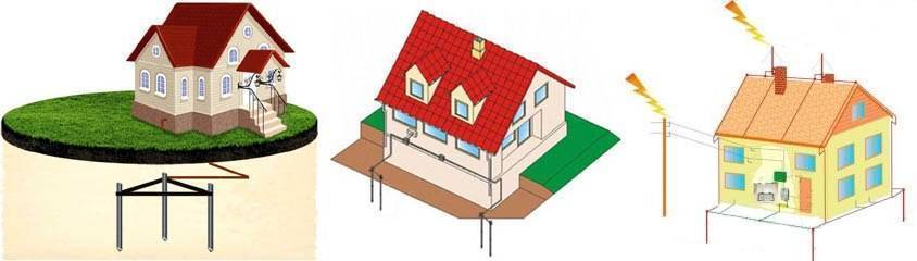 Существует защитное и рабочее заземление. Главное предназначение защитного заземления – обеспечение надежной защиты жильцов от поражения электротоком, а электрической техники – от поломки при разного рода сбоях в сети. Если система включает в себя молниеотвод, наличие которого крайне желательно в частных домовладениях, заземление будет защищать и от поражения молнией.