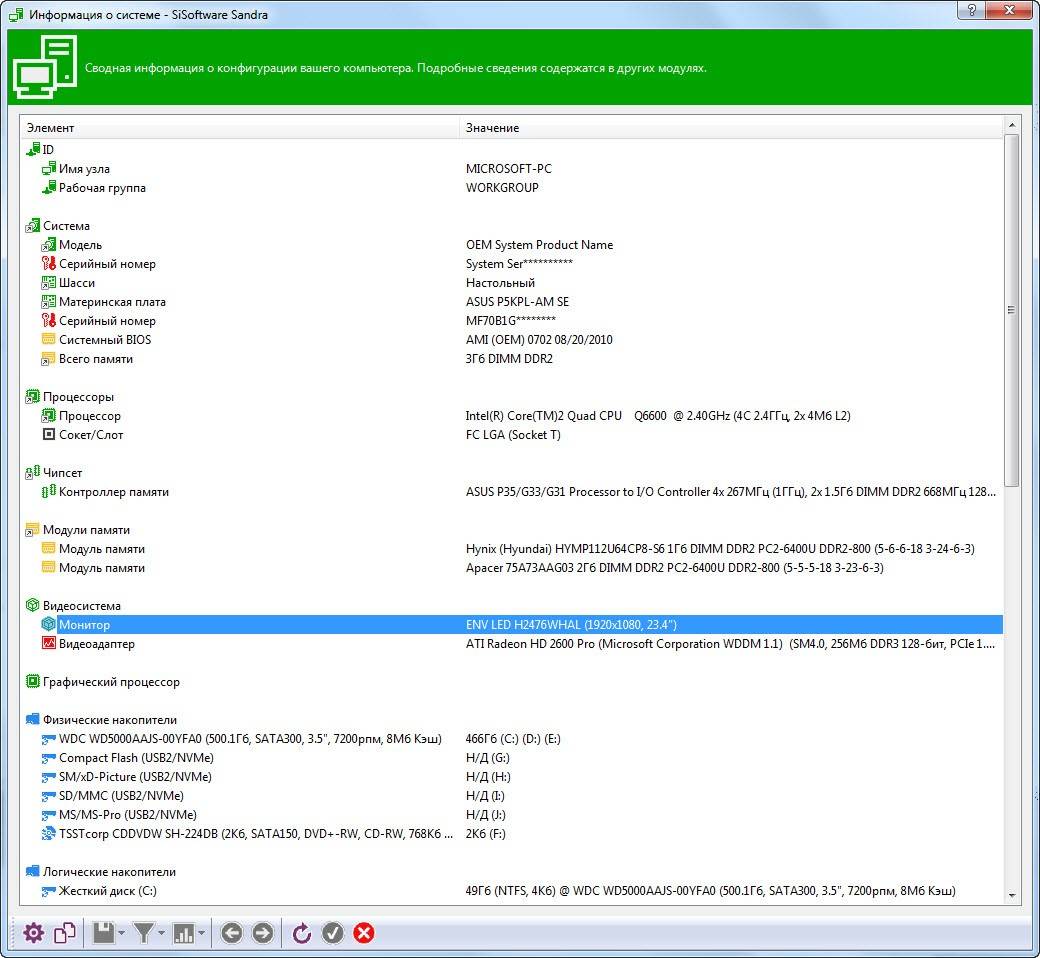 Другой продукт, Sisoftware Sandra Lite, предоставляется без ограничений. Подробно тестирует параметры ноутбука, среди них размер экрана.