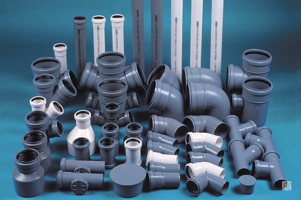 - огромный выбор труб разного диаметра и длины, также есть достаточное количество переходников и монтажных элементов, так что обустройство канализационной системы из ПВХ труб – это относительно простая задача.