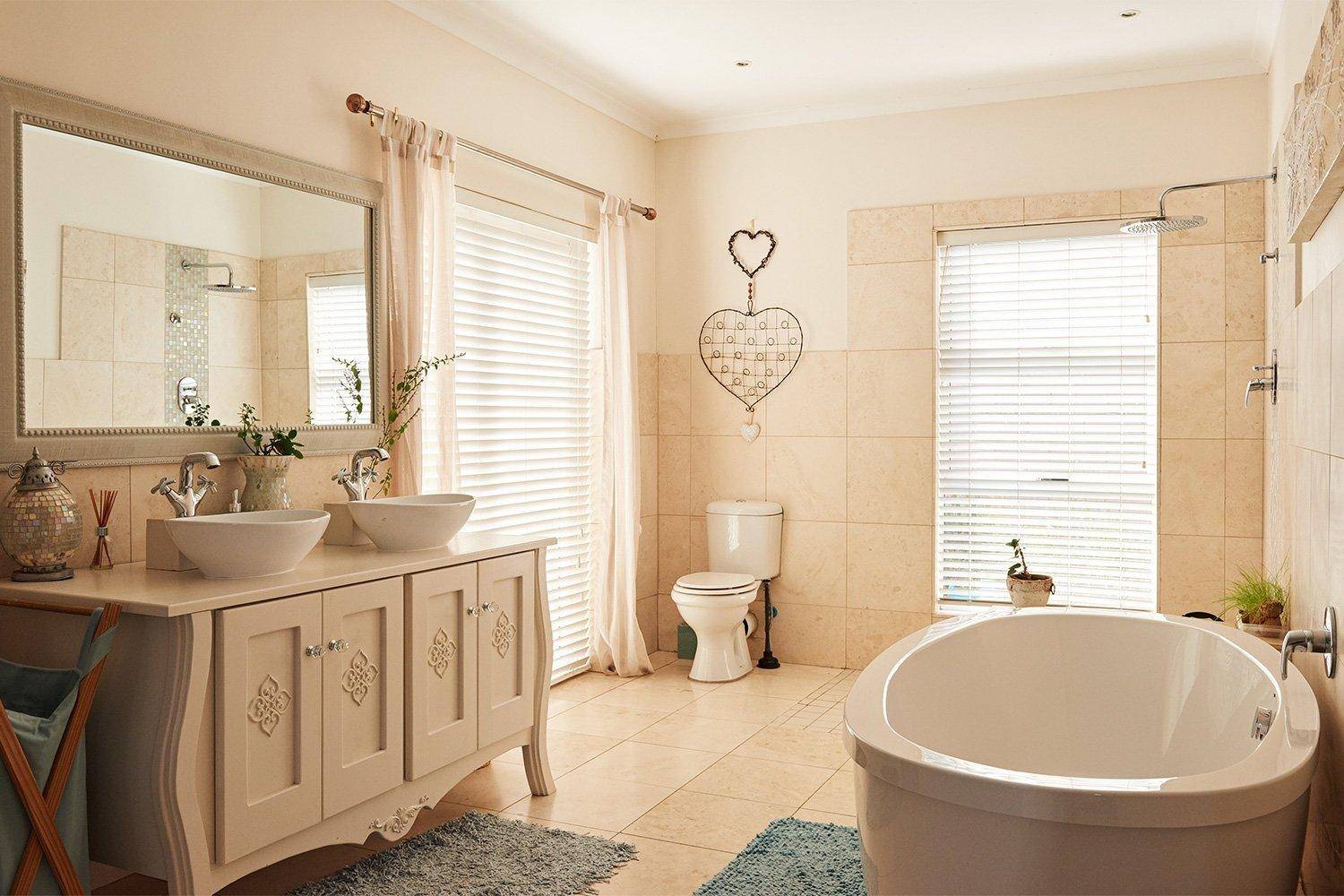 Помещение просторной ванной комнаты может быть выполнено в двух вариантах: