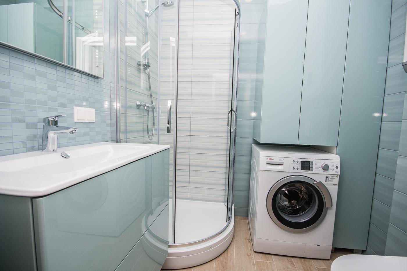 Разумеется, высота умывальника, под которым предполагается поместить стиральную машину, может быть больше, чем размеры устройства, но никак не меньше. Считается, что для мужчин лучше всего устанавливать раковину на высоте 94-102 см, а для женщин норма несколько ниже – 82-93 см.