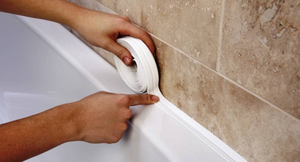 Перед его установкой необходимо обработать зазор силиконовым герметиком. После его высыхания можно монтировать самоклеящийся уголок. Для этого достаточно снять защитную ленту и плотно прижать одну часть к стене, а другую к ванной.