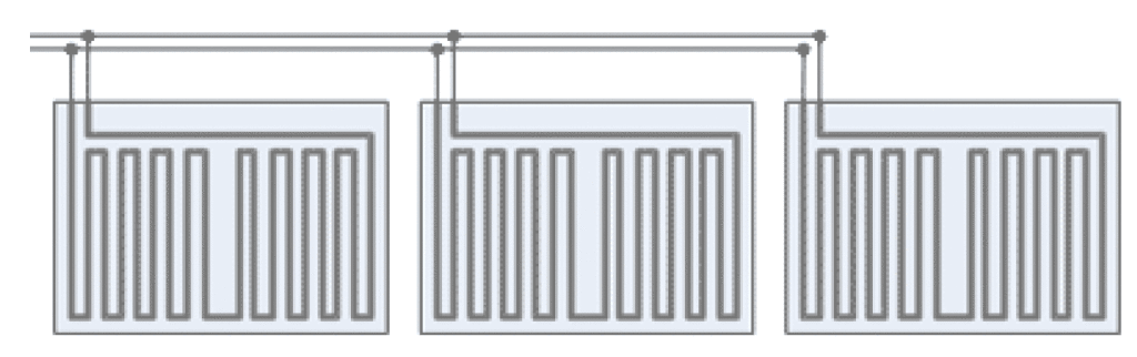 Нагревательные элементы в конструкциях пленочного ИК отопления – это резистив из металла-графитового сплава, который превращает электроэнергию в тепловое излучение. Он состоит из узких полос между несколькими слоями пленок из полиэстера. Алюминиевая фольга, которая покрывает нагревательный элемент, равномерно излучает тепло. На внешней стороне присутствуют контакты для подключения к электропитанию. Такая конструкция состоит из автономного теплоизлучающего контура, который можно контролировать при помощи термодатчика и управляющего цилиндра.