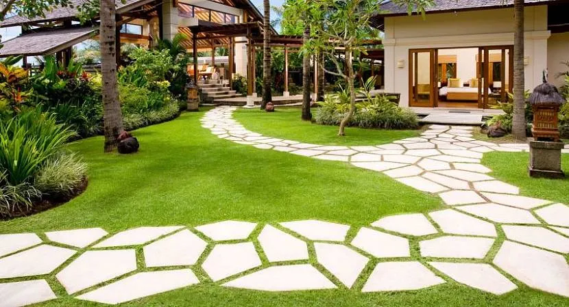 Особое внимание уделяется парадной зоне, ведущей от калитки к дому. Также продумать расположение тропинок стоит и в саду, на заднем дворе, в цветнике. При планировании тропинок стоит учесть, что все они делятся на: