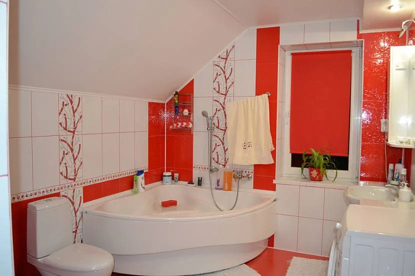 Многие современные дизайнеры стараются только частично затрагивать классические правила выбора плитки для маленькой ванной комнаты, и делают акцент на плитке среднего размера, глянцевой и светлой. Но, при этом, обязательно вводят в помещение яркие тона, которыми разбавляют общий дизайн. Несмотря на то, что ванная комната небольшая, томить ее однотипной раскладкой и единым цветом не стоит, даже если это белый глянец, который позволит немного расширить визуальное восприятие. Нужно понимать, что визуальный эффект не является физическим, и делать ударение только на него – не совсем правильно!