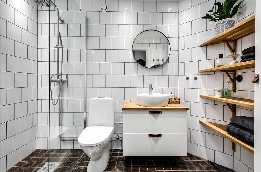 Одним из наиболее модных стилей, которые хорошо раскрываются в больших или малогабаритных помещениях, является скандинавский стиль. Отделка белого цвета может быть дополнена элементами из дерева и небольшим количеством яркого декора. Свежий и стильный интерьер помогает визуально расширить пространство ванной комнаты.