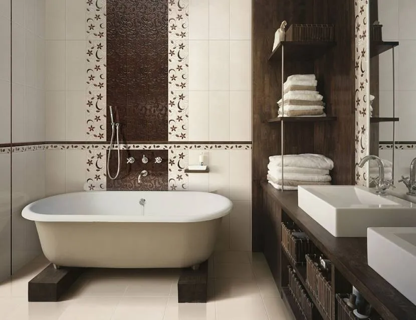 Для того чтобы душевая зрительно смотрелась обширнее нужно подобрать плитку, которая подойдет по всем параметрам. Практичный кафель для дизайна ванной следует выбрать исходя из его эксплуатационных свойств и привлекательного внешнего вида. Правильно скомпонованная плитка, дизайн и расцветка способны придать оригинальный образ всему интерьеру. Например, можно выложить светлый и темный кафель таким образом, чтобы они делили стену по горизонтали, а в качестве разделительной полосы использовать декоративный узор.
