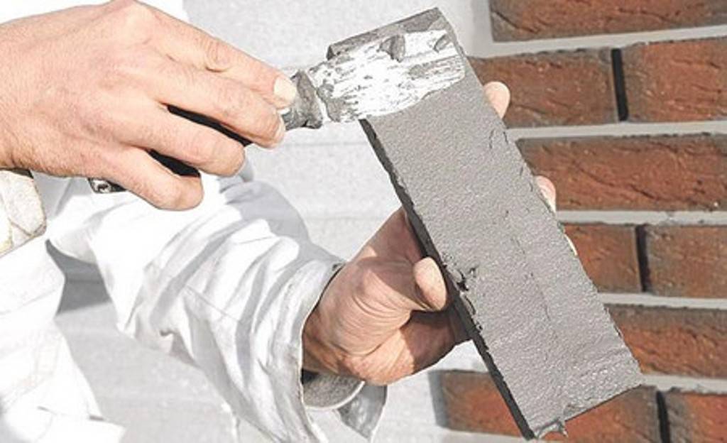 - Поверхность с разделанными швами тщательно обметается кистью от пыли и крошки, затем увлажняется штукатурной кистью-макловицей.