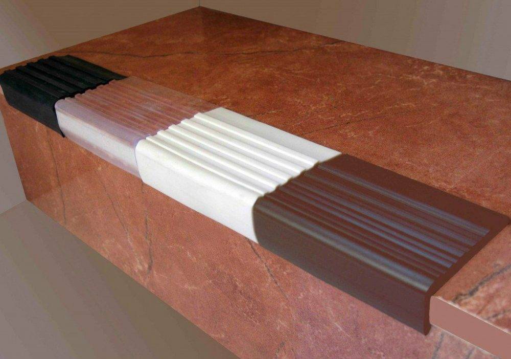 Установленный на стыке элементов ступени профиль и порожек
