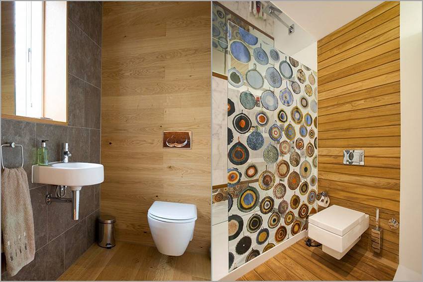 | Керамика проста в уходе и годами сохраняет яркий цвет и глянец. | Облицовка плиткой сделает стены толще на 1-1,5 см, что уменьшит площадь санузла. |