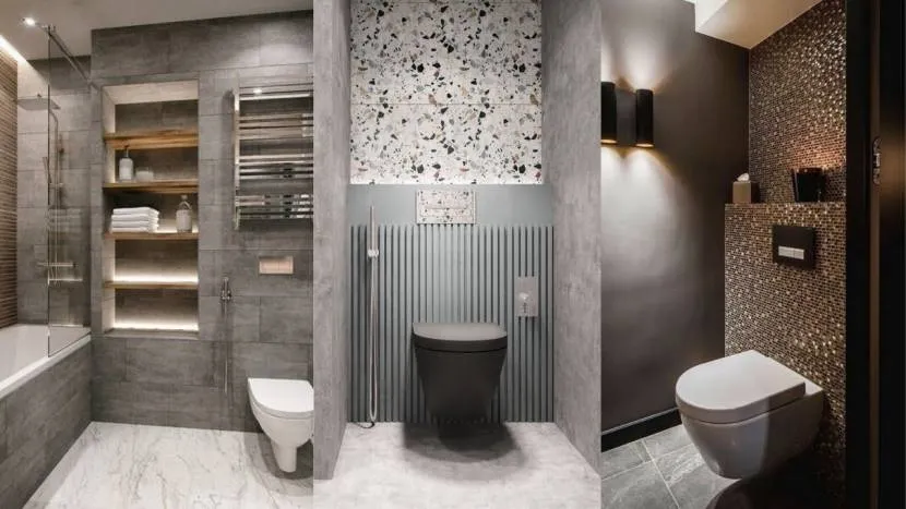 Рекомендуется посмотреть соответствующие фото. Плитка в туалете в современном стиле отличается презентабельным внешним видом и эффективно справляется со своими функциями.