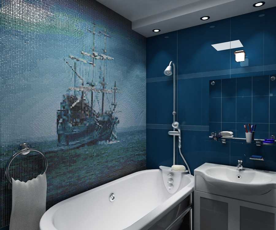 Не стоит декорировать стены мозаичным изображением в малометражном санузле, поскольку лучше всего картина будет смотреться только в большом помещении.