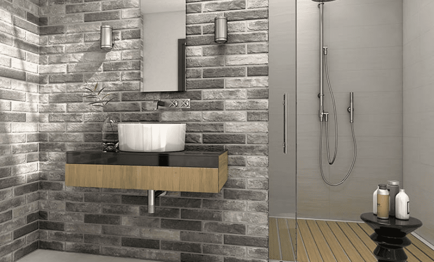 Красиво смотрятся вариации серой плитки(нет не скучно), особенно с текстурой(стильно выглядит при подсветке). Многие из видов серого кафеля на фото — вполне бюджетные варианты и хорошо смотрятся в реальных квартирах.