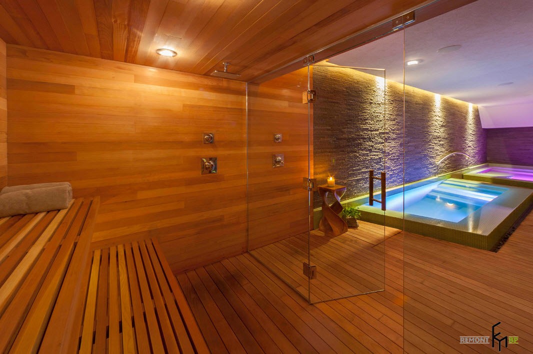 Редкая сауна, расположенная в частном загородном доме обходится без бассейна. Небольшой водоем с прохладной водой освежит и придаст тонуса после жаркой парной. Контраст температур – отличный способ закаливания и поддержания здоровья на должном уровне.