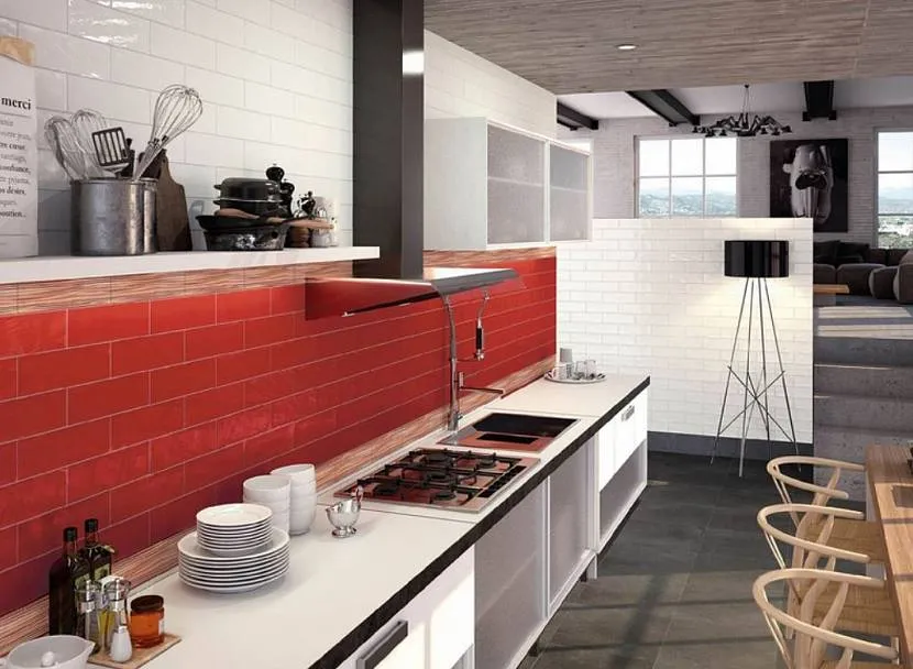Данная продукция для укладки на стены и другие поверхности в помещении и снаружи внешне имеет сходство с кирпичиками. Благодаря подобной особенности рабочую область на кухне можно выделить в общем дизайне помещения. Кроме того, некоторые решения предлагают использовать плитку также для декора оконных или дверных проемов для лаконичного завершения дизайнерской задумки.