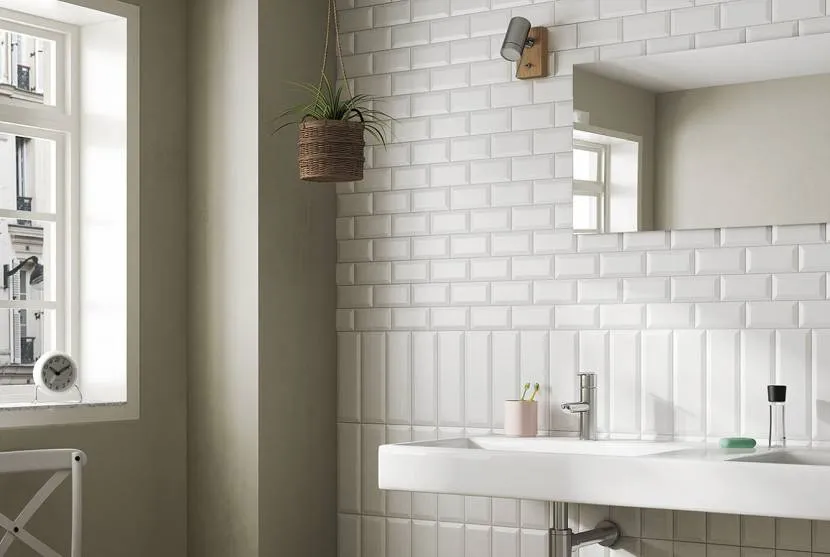 - белый цвет – универсальный. Подойдет для комнат любого размера. В небольшой ванной белая плитка расширит пространство и добавит в нее света. К тому же с ней можно сочетать керамическую плитку ярких цветов;