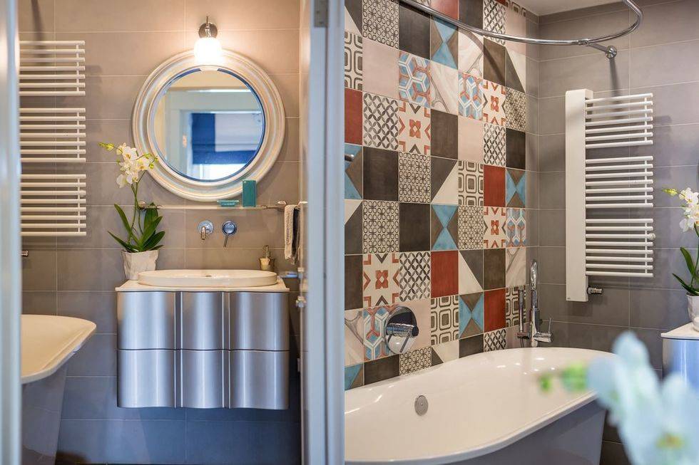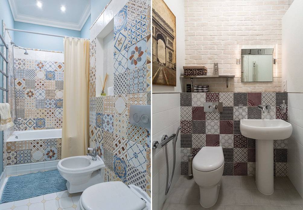 Как лучше вписать плитку пэчворк в интерьер ванной вне зависимости от стиля? Есть несколько интересных способов, которые чаще всего используют профессионалы при укладке плитки: