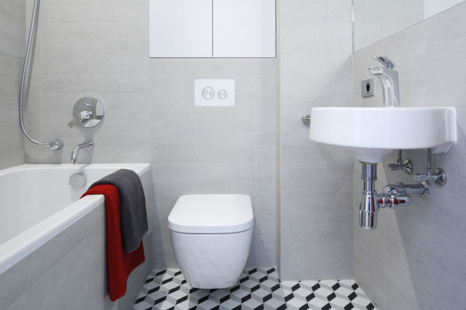При укладке плит можно поэкспериментировать с материалом нестандартных размеров. В этом случае придется потратить больше времени для монтажа, заделки швов. Монтаж плитки в ванную под бетон предусматривает подготовку поверхностей, выравнивание с применением специальных составов.