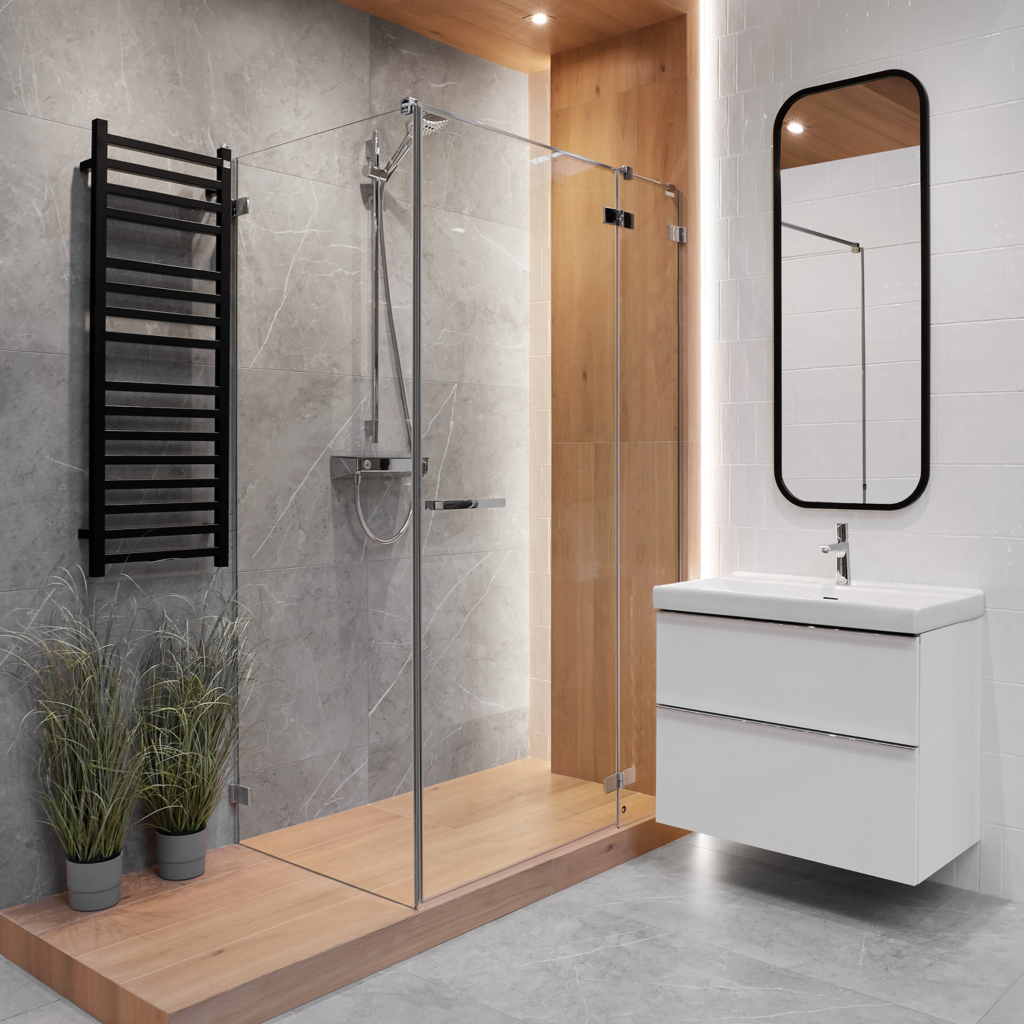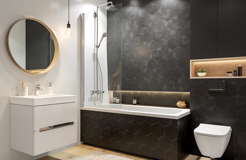 Черная плитка — хотя это может показаться рискованным решением, черная плитка в ванной становится все более популярной. Они отлично вписываются в эстетику индустриального стиля, поэтому, если вы хотите оформить ванную комнату в стиле лофт, черная плитка станет хорошим решением.